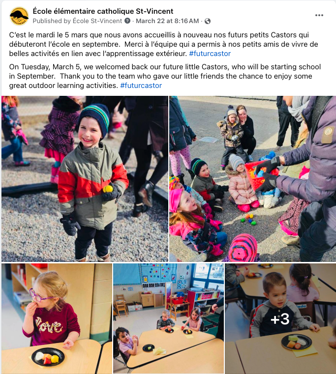 Conseil scolaire catholique Franco-Nord’s 11 elementary schools are now presenting their school visits for children starting kindergarten in September, to ensure a smooth transition, and in July, future kindergarteners will benefit from a free summer camp!