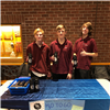 As part of a class project within the Entrepreneurship course during the first semester, eight groups of students each chose a product concept based on an original idea, polled students in grades 7-12 to find out their appeal, calculated the costs associated with producing it as well as its profitability, and made a marketing pitch to decide if their product was viable. The eight groups then prepared a marketing campaign, made a sample of their product in the school's MakerSpace, made it available to all students and staff at the Business Fair and then produced the quantity ordered and delivered their product to buyers. A custom lanyard, a pair of custom laces, a hoodie printed with the group's logo, an embroidered crewneck shirt with choice of imagery, an engraved aluminum water bottle, a custom workout shirt, an international candy bag, and a do-it-yourself cookie jar were the products featured.