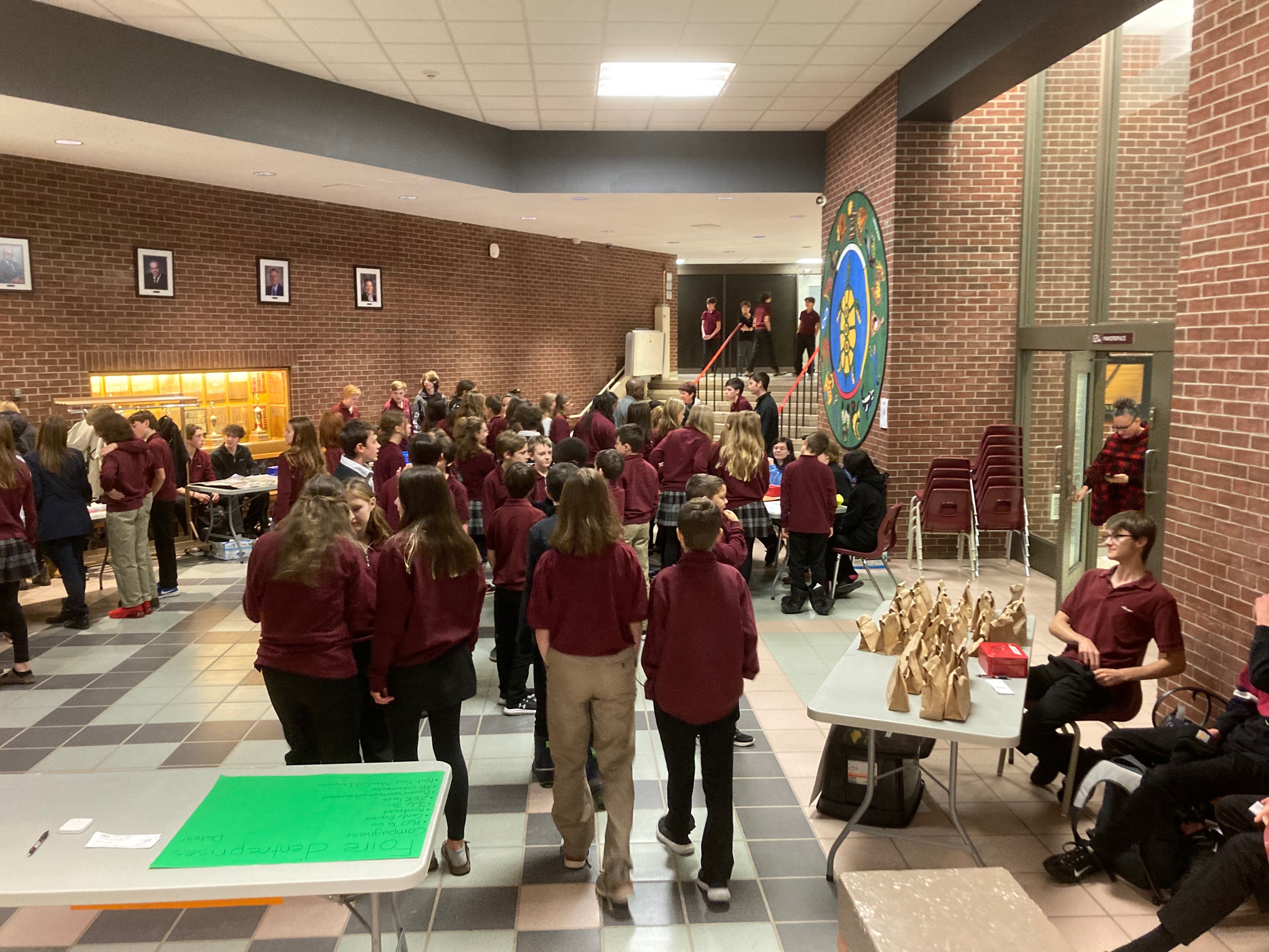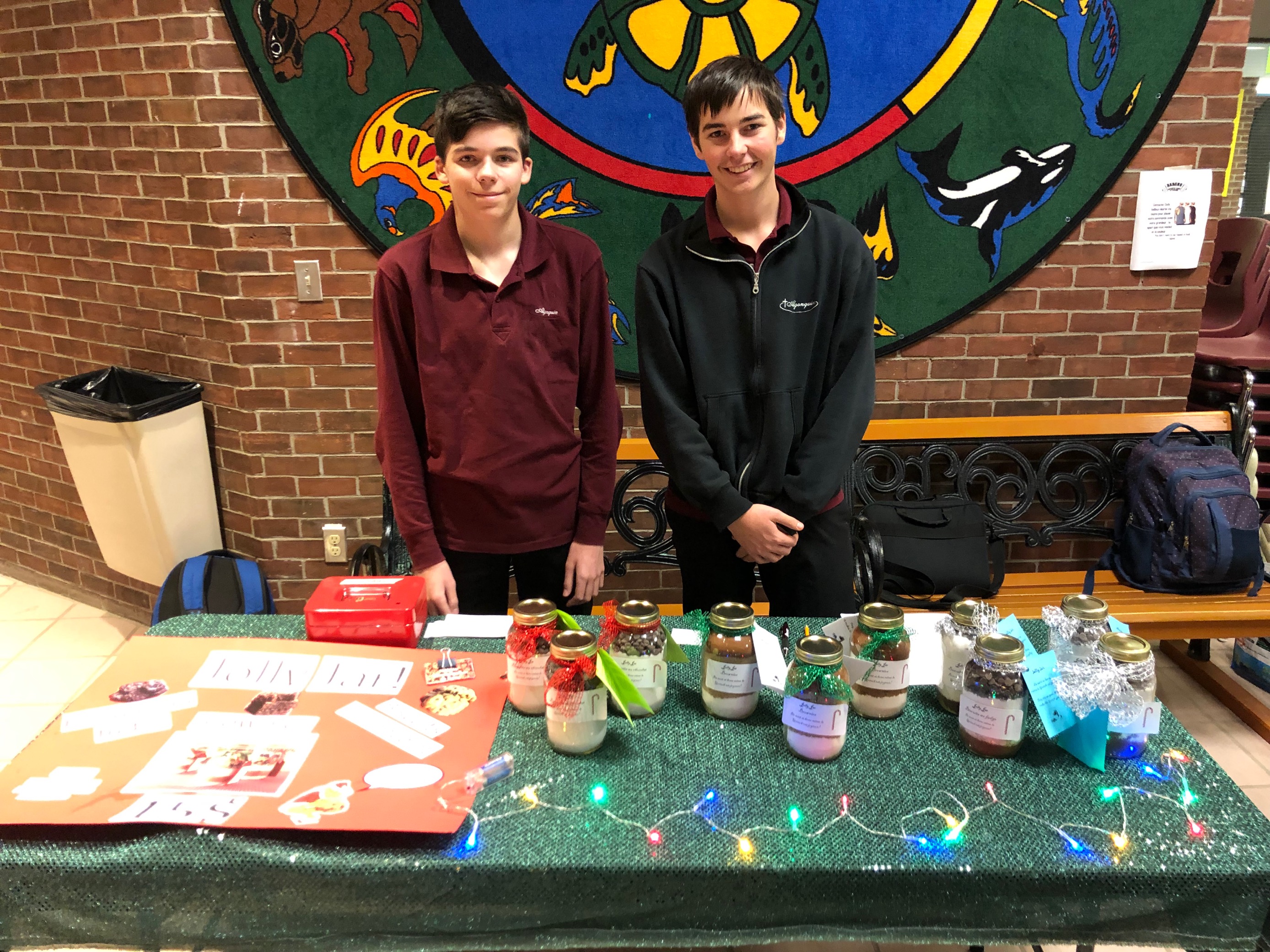 Dans le cadre d’un projet de classe au sein du cours d’Entrepreneuriat du premier semestre, huit groupes d’élèves ont choisi chacun un produit basé sur une idée originale, ont sondé les élèves de la 7e à la 12e année pour connaître leurs intérêts, ont calculé les coûts associés à sa production ainsi que sa rentabilité et ont fait un argumentaire marketing pour déterminer si leur produit était viable. Les huit groupes ont ensuite préparé une campagne marketing, réalisé un échantillon de leur produit dans l’espace MakerSpace à l’école, l’ont présenté à tous les élèves et le personnel lors de la Foire d’entreprises et ont ensuite procédé à la production de la quantité vendue et à la livraison aux acheteurs. Les huit produits présentés étaient les suivants : une lanière personnalisée, une paire de lacets personnalisés, un hoodie imprimé avec le logo du groupe, un gilet à col roulé brodé avec choix d’images, une bouteille d’eau en aluminium gravé, un gilet d’entraînement personnalisé, un sac de bonbons internationaux et un pot de biscuits « do-it-yourself ». L’apprentissage par expérience, les projets authentiques et la citoyenneté sont toujours au premier plan à l’École secondaire catholique Algonquin !