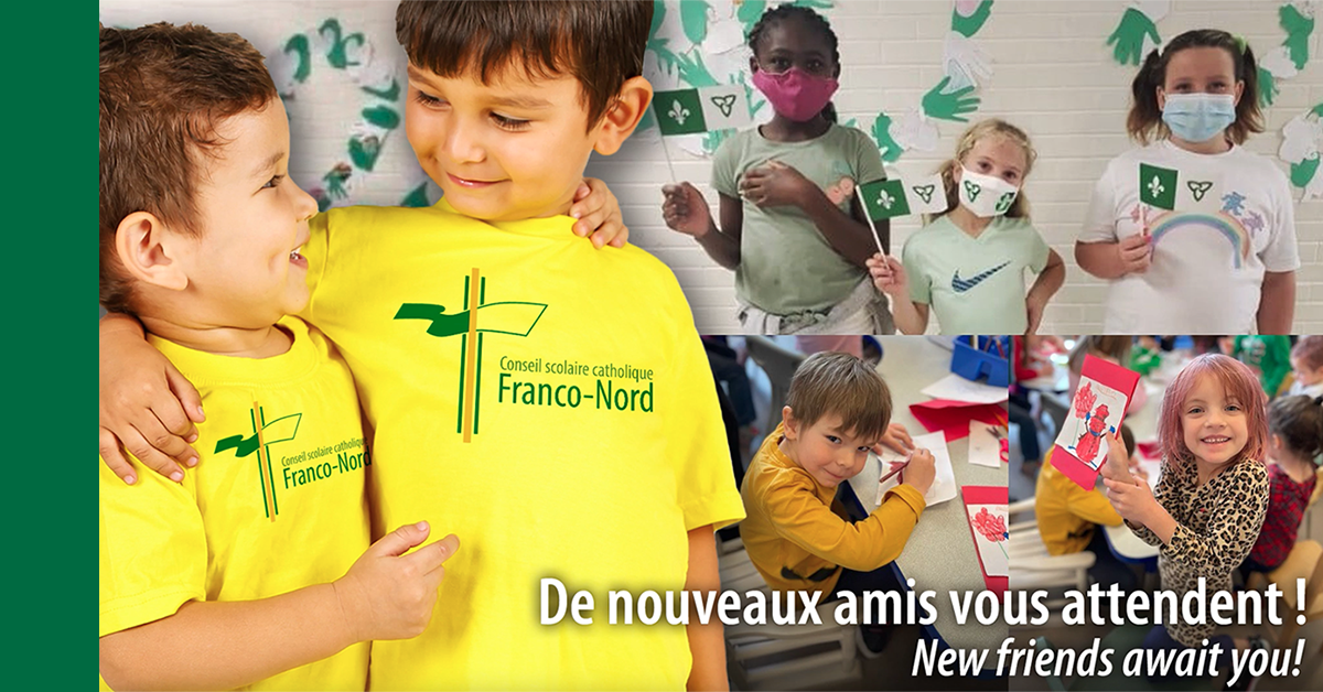 Register now for Kindergarten for the 2023-2024 school year at one of Franco-Nord's French-language Catholic elementary schools: