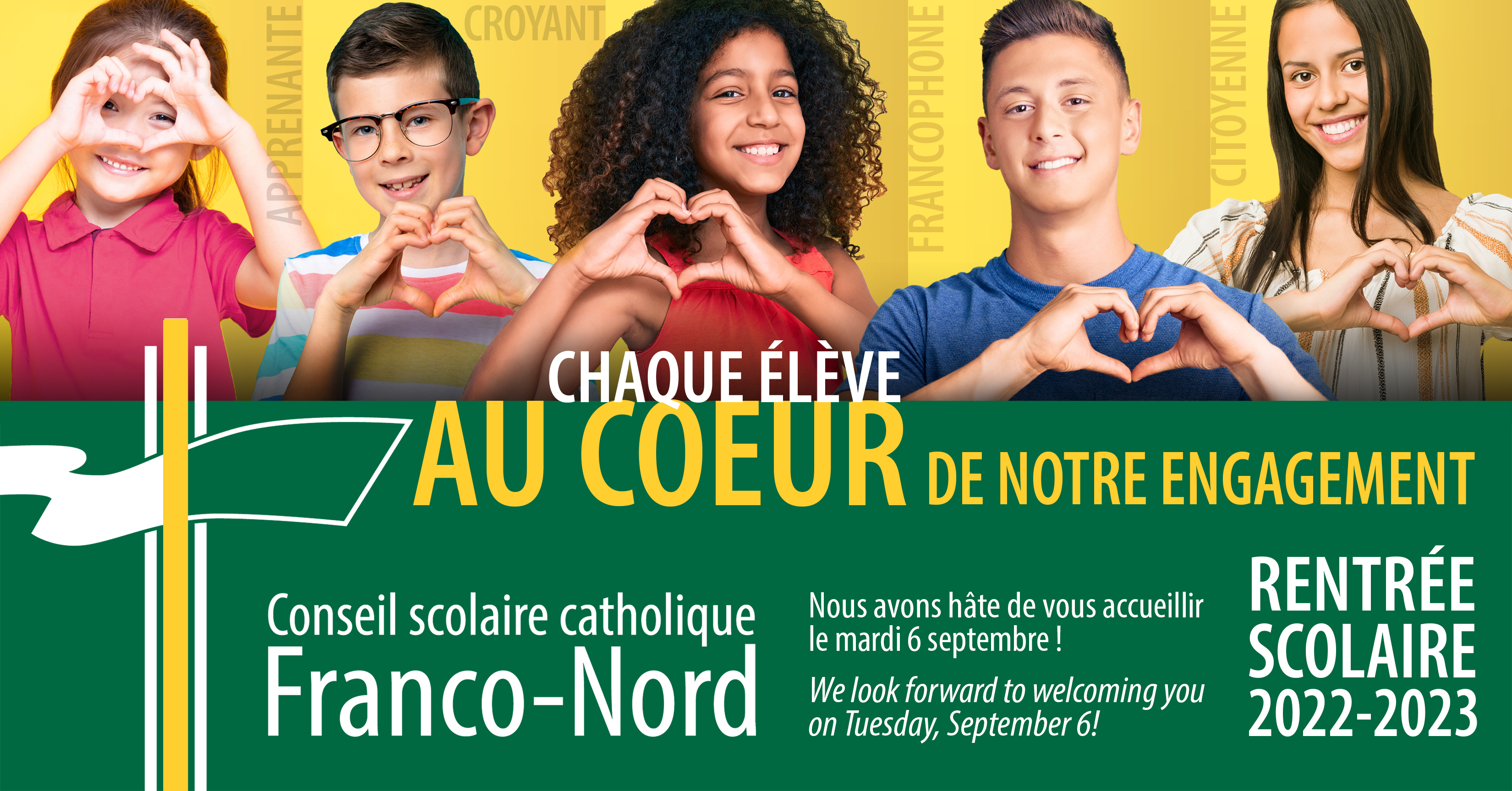 We hope you are enjoying the summer season. Conseil scolaire catholique Franco-Nord staff is looking forward to welcoming students back to school as of September 6!