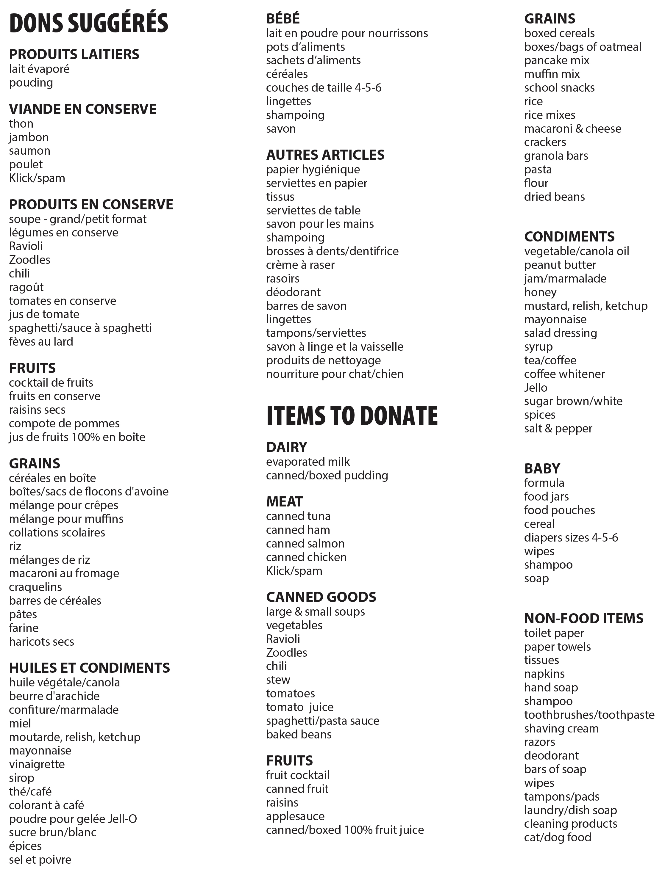 Please refer to the attached new list of suggested donations that will greatly benefit the West Nipissing Food Bank.