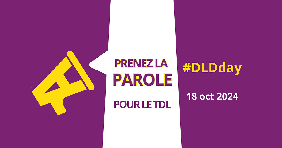 On parle du TDL lorsqu’un enfant ou un adulte éprouve des difficultés à parler ou à comprendre le langage, ce qui peut nuire à l'alphabétisation, l'apprentissage scolaire, les amitiés et le bien-être émotionnel. Au Canada, il y a environ 1/2 million d'enfants et d'adolescents avec un TDL. Le 18 octobre 2024, joignez-vous à nous en portant du mauve et/ou du jaune pour sensibiliser les gens au TDL!