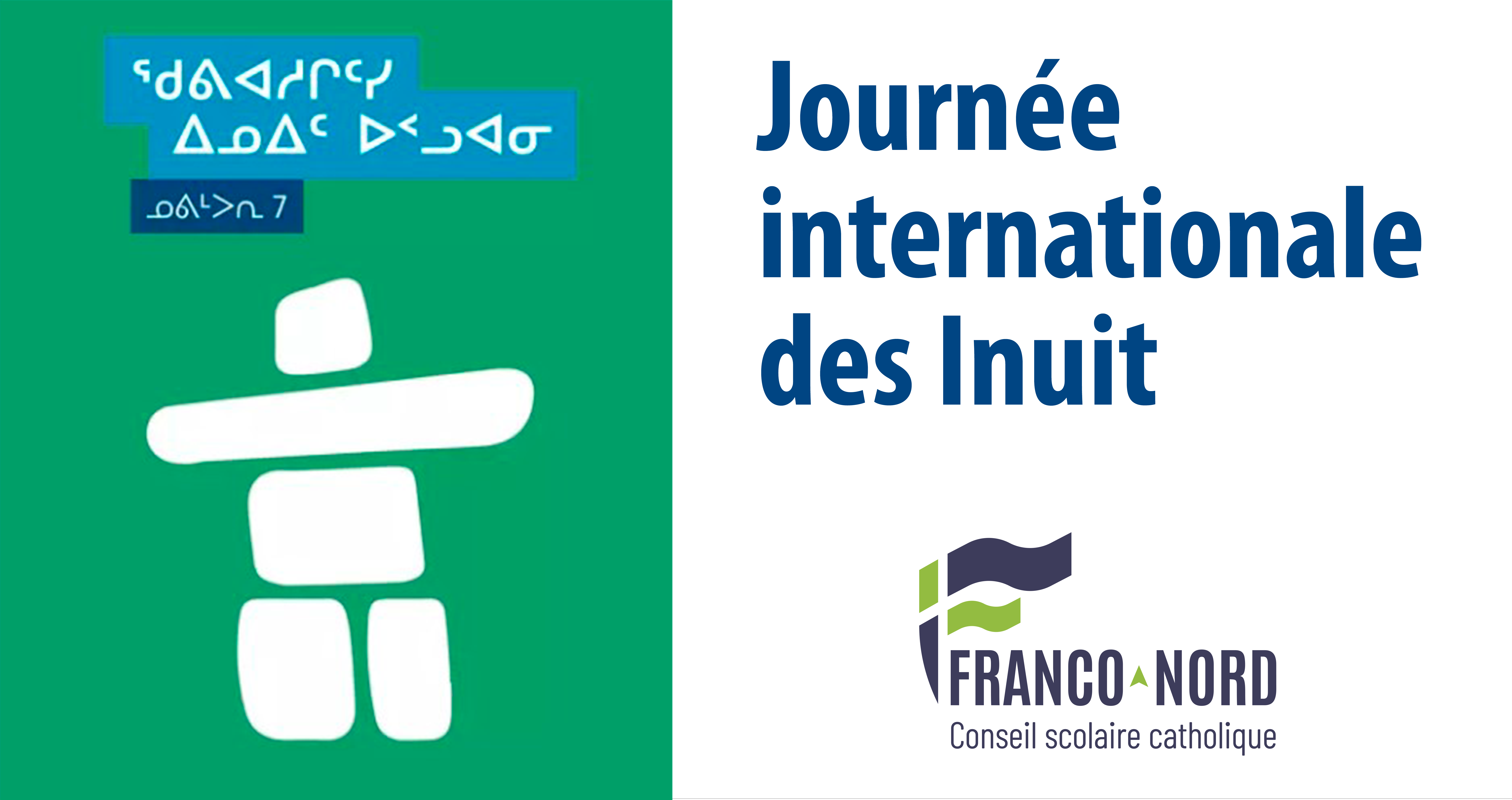 Le Conseil scolaire catholique Franco-Nord est fier de souligner la Journée internationale des Inuit. Sachant que plus de 65 000 Inuit vivent au Canada, l’objectif de cette journée est de renforcer l’unité des Inuit, défendre les droits et les intérêts des Inuit ainsi qu’assurer le développement de la culture des Inuit. Ensemble, célébrons l’histoire et la riche culture du peuple des Inuit.