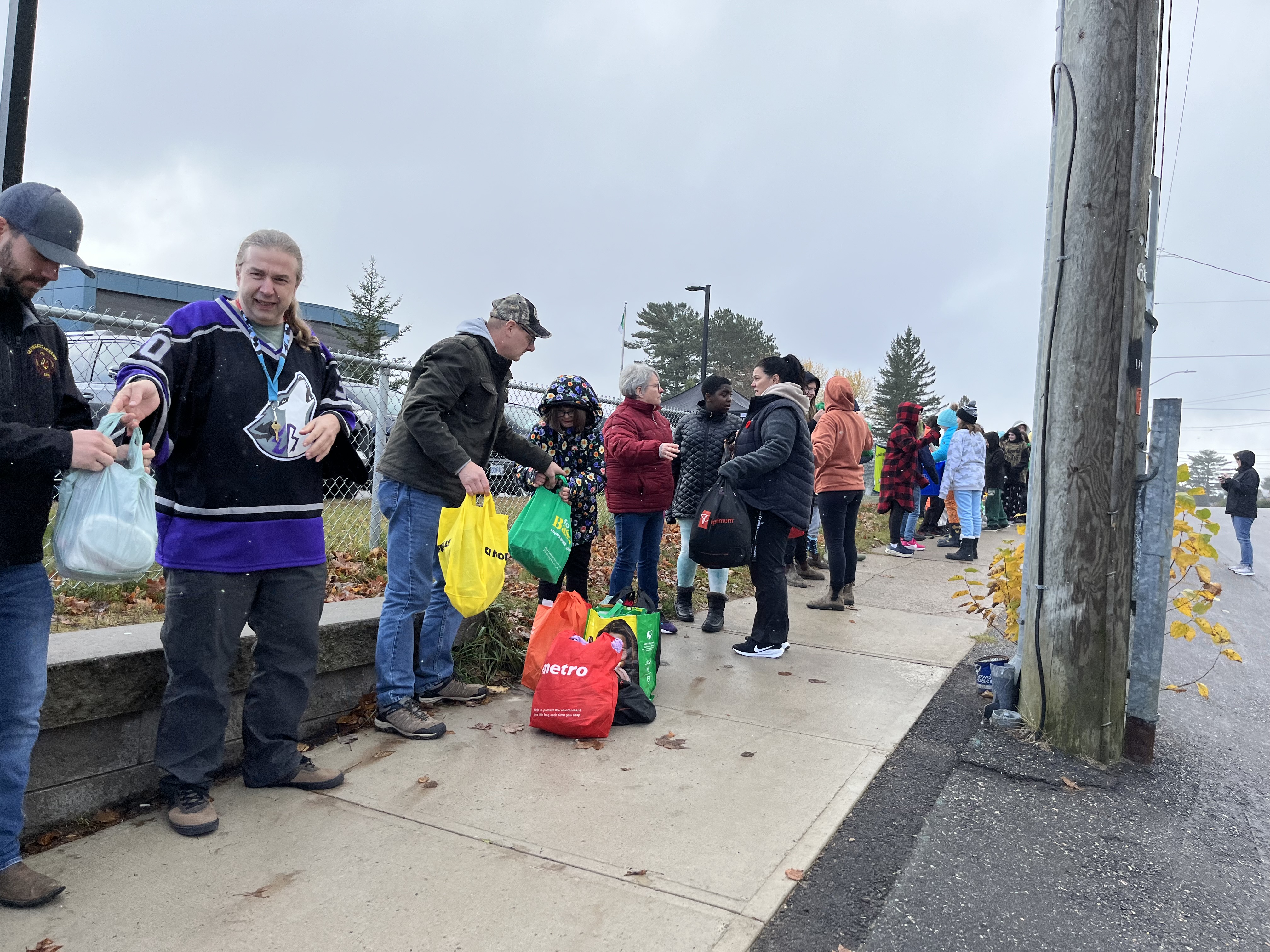 C'est le vendredi 1er novembre dernier que les élèves des écoles catholiques Sainte-Anne et Élisabeth-Bruyère de Mattawa se sont mobilisés pour livrer à la banque alimentaire locale, sous forme de chaîne humaine, leur plus grande collecte de denrées non périssables et de vêtements, nouvellement nommée Camionnette de cannettes.