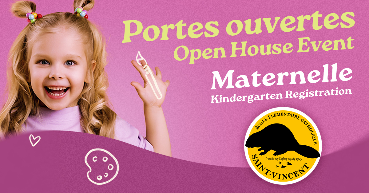 L'École élémentaire catholique Saint-Vincent, située au 124, rue King Est à North Bay, invite les familles des enfants qui débuteront à la maternelle en septembre 2025, à participer à sa soirée portes ouvertes qui aura lieu le mercredi 29 janvier à 17h30. Un souper pizza sera offert gratuitement!