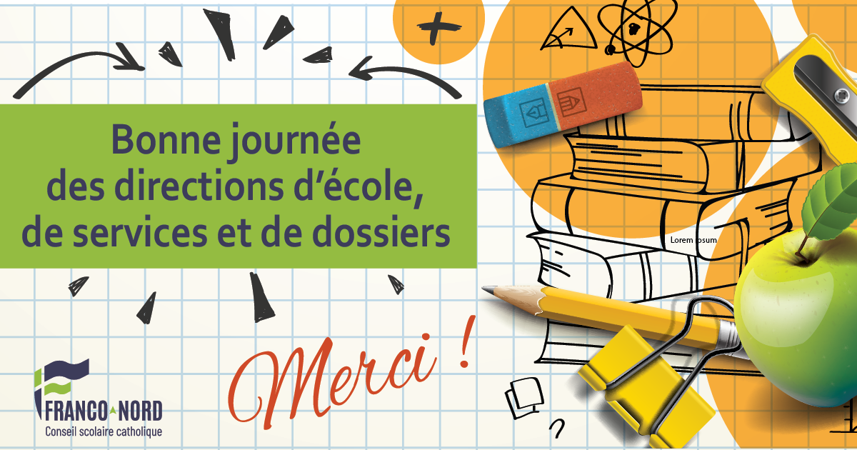 Les directions d’établissements scolaires jouent un rôle pédagogique et administratif fondamental à la vitalité du milieu scolaire et à la qualité de l’enseignement. Elles sont les piliers centraux autour desquels gravitent les équipes-écoles, le centre administratif du conseil scolaire, les parents et la communauté scolaire, ainsi que les élèves. Lorsque la communication et la collaboration sont au rendez-vous entre tous les services et l’ensemble du personnel de l’école, nous ne pouvons que reconnaître le travail et le leadership des directions. Leur tâche exige qu’elles soient toujours à l’écoute, rassembleuses, dynamiques. Elles ont à cœur de s’assurer que l’école offre un environnement stimulant, sécuritaire et inclusif qui permet à chacun des enfants de s’épanouir et de grandir dans un milieu favorable au développement de son plein potentiel.