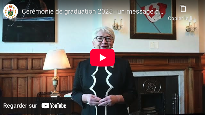 Veuillez consulter la lettre ci-jointe et le message vidéo ci-dessous de l’honorable Edith Dumont, lieutenante-gouverneure de l’Ontario, dans le cadre de votre cérémonie de remise des diplômes 2025.